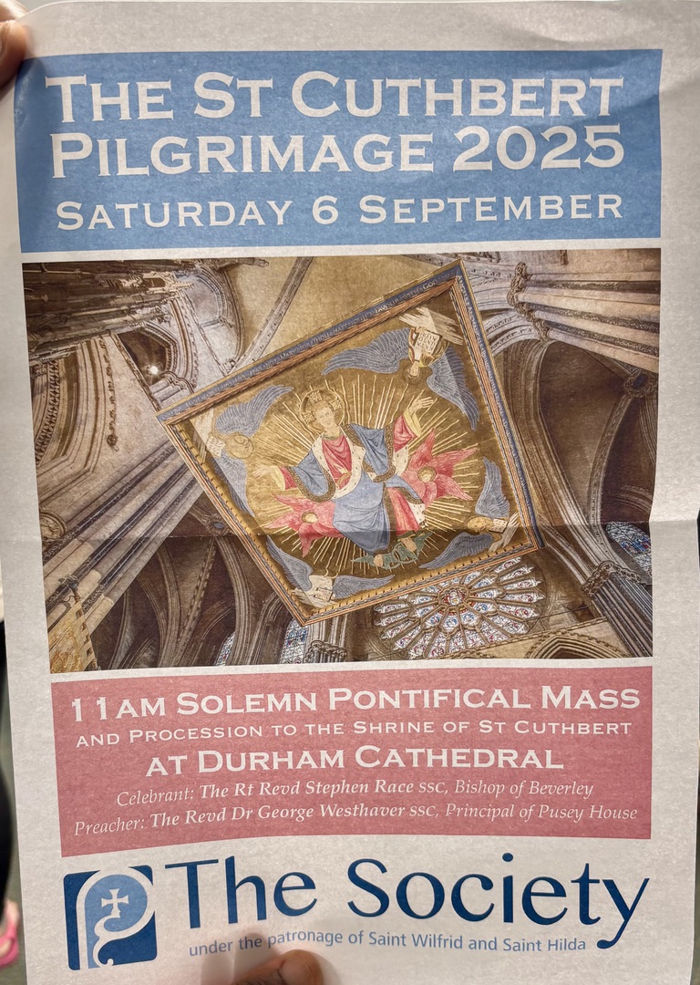 Fr Jules lead a pilgrimage to Durham, for a solemn mass at the Cathedral @11AM. The celebrant was The Rt Revd Stephen Race SSC, Bishop of Beverly, with preacher The Revd Dr George Westhaver SSC, Principal of Pusey House.